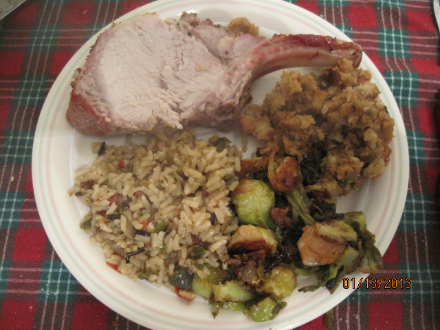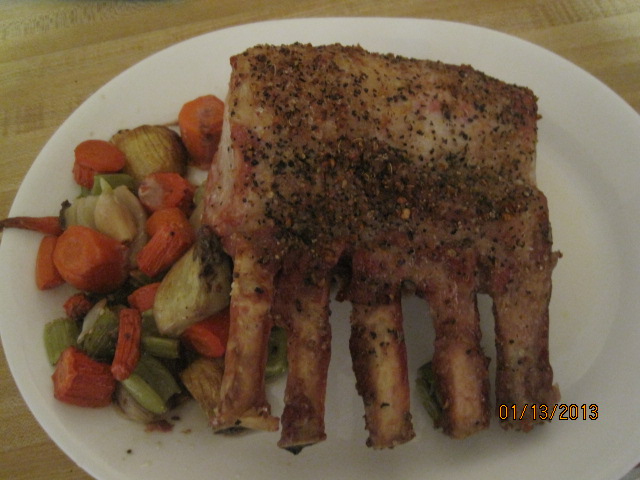 This week was mostly a week of meals I had already posted recipes for, so I really didn’t have anything new to write about other than this one meal that I made. I had gone shopping at Adam’s last week and they had a center cut rack of pork on sale for a really good price. I had never made one before, the rack only cost about $5.00 and would more than feed the three of us, so I figured what the heck and I bought one. Then I had to try to find a recipe to use to make it. I looked around at all the usual places I got on the Internet for recipes, but I didn’t really see what I liked, so I put my faith in Google and went looking there. That is where I turned up this recipe, on a website called A Culinary Journey With Chef Dennis. The recipe sounded good, it was easy, and I had all the ingredients, so it was the winner.