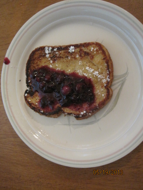 I also decided that I wanted to make a little bit of blueberry sauce to go along with the French toast. I had just bought some blueberries at the store the other day and they looked pretty good. This recipe makes quite a bit of sauce, a lot more than what was needed for the French toast, but we have it on hand now and I think it’ll be great to use with things like ice cream, cake or even in your oatmeal in the morning.