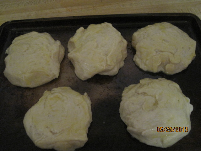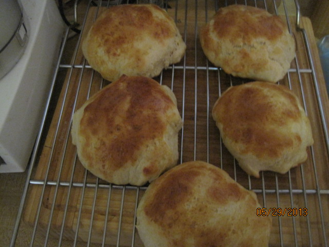 Just a few things about this recipe. Number one, I’ve never made any type of buns like this before so it was a new experiment for me. I have to say it was pretty easily done and they came out quite nice. I did eliminate putting the cheddarr and black pepper into the rolls because I wasn’t sure how they would come out and wanted to try them just plain the first time around. We all liked the hamburger buns better than anything you would buy at the supermarket. As is noted in the recipe, however, the recipes for the buns and the ketchup are quite large. The buns themselves come out big when they are finished and are probably more than what you need for a hamburger unless you really like a large roll. I actually ended up cutting the recipes for the buns and the ketchup in half of what is shown here and still ended up with a lot of ketchup and big buns. Next time, I think I will portion the buns out to make them even smaller and see how they come out and maybe even just do 1/3 of the ketchup recipe. You could go for completely homemade in this recipe and grind your own beef with a mixture of chuck and sirloin and form your own patties that way. Of course, you can serve any condiments or sauces that you like on the side. We actually made ours with some crispy bacon and some onion rings.