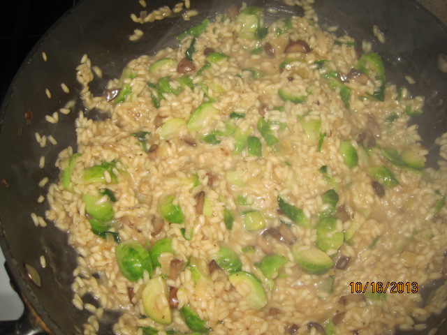 A couple of notes about this recipe. As I stated, I used Parmesan instead of a blue cheese and I think the results were fine. I also omitted the walnuts as well but feel free to add them in if you like them and want the added crunchy texture. I also substituted water for the white wine in the recipe and it was fine. Finally, I could not get my hands on any shitake mushrooms locally so I just used sliced white mushrooms instead. I think they worked out well though if you can get shitakes, I would use them as I like the look and flavor of them myself. The risotto came out nicely and was very creamy. I loved the flavor of the Brussels sprouts in the mix and everyone seemed to enjoy the dish, I actually used this as a side dish to the meal, but this could be a meal all on its own if you were going for a meat free meal and just serve this with a salad on the side and I think it would be nice. It could then be vegetarian if use vegetable broth and gluten-free.