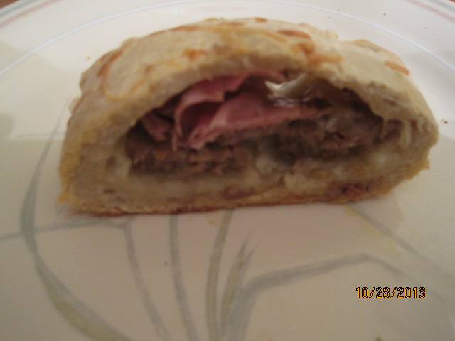 The great thing about stromboli is that you can really put anything inside it. Sean is not a big fan of the peppers, so I left them out and put some extra ham and cheese inside instead. You could just as easily put leftover chicken in there or any other vegetables you may like and have on hand. You can even just do vegetables and cheese if that is what you prefer. I am guessing Sean liked it since he devoured it.