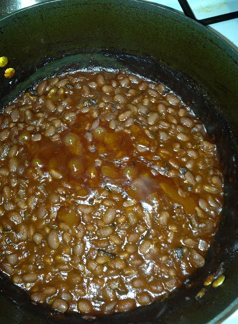 I thought this recipe was great because it makes use of the dried beans instead of canned, which I find have a lot more flavor to them. There are not many ingredients in this one and once it is under way I was pretty much able to leave it alone and let it cook since I was making these with the spare ribs I made last week, so both were in the oven and are on their own all day while I could do other things and then have dinner ready all at once. The beans had a nice flavor from the mixture of the chili powder, ketchup, molasses and sugar and we all loved them. This recipe does make a lot of beans (the website says it makes 10 servings) so you will have lots leftover to use for other meals or you could freeze some to have on hand for another time.