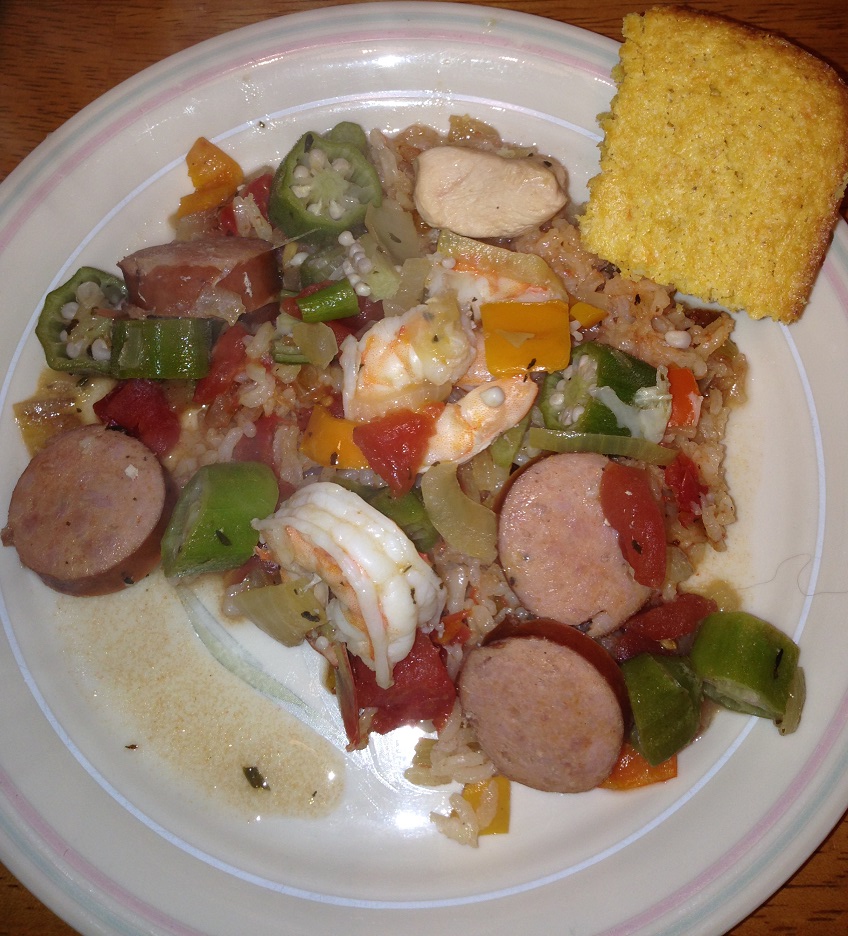 I had meant to post this recipe a couple of weeks ago but I seemed to have caught up in other things lately and just completely forgot about it until I was making shrimp for dinner tonight and remembered I had a recipe for the shrimp, chicken and andouille gumbo I had made back on Fat Tuesday. Sean had requested some gumbo for that night so I had picked my way through a few different recipes until I came across this one from Bon Appetit. One thing to not about this particular recipe is that it makes a lot of gumbo. The servings for the original recipe are for 16 people. I cut the recipe in half when I made it and it still made a lot with many leftovers, so unless you are planning to feed a lot of people with this one, you might want to try to adjust it to fit your particular meal needs. Either way, it’s a great recipe to use.