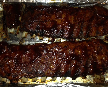 I have to say these were among the most tender ribs I have ever had and certainly the best ones I have made at home. They were coming easily off the bone and just melted in your mouth when you bit into them. I used the St. Louis ribs for this recipe since they were on sale here last week and were a lot cheaper than the baby backs. They are a little larger and a bit fattier but I think they have great flavor as well. You can serve these with your favorite recipes of potato salad and baked beans and you have a great meal. All you need to do is put them in the oven, go about your business for a few hours and you have great ribs for dinner.
