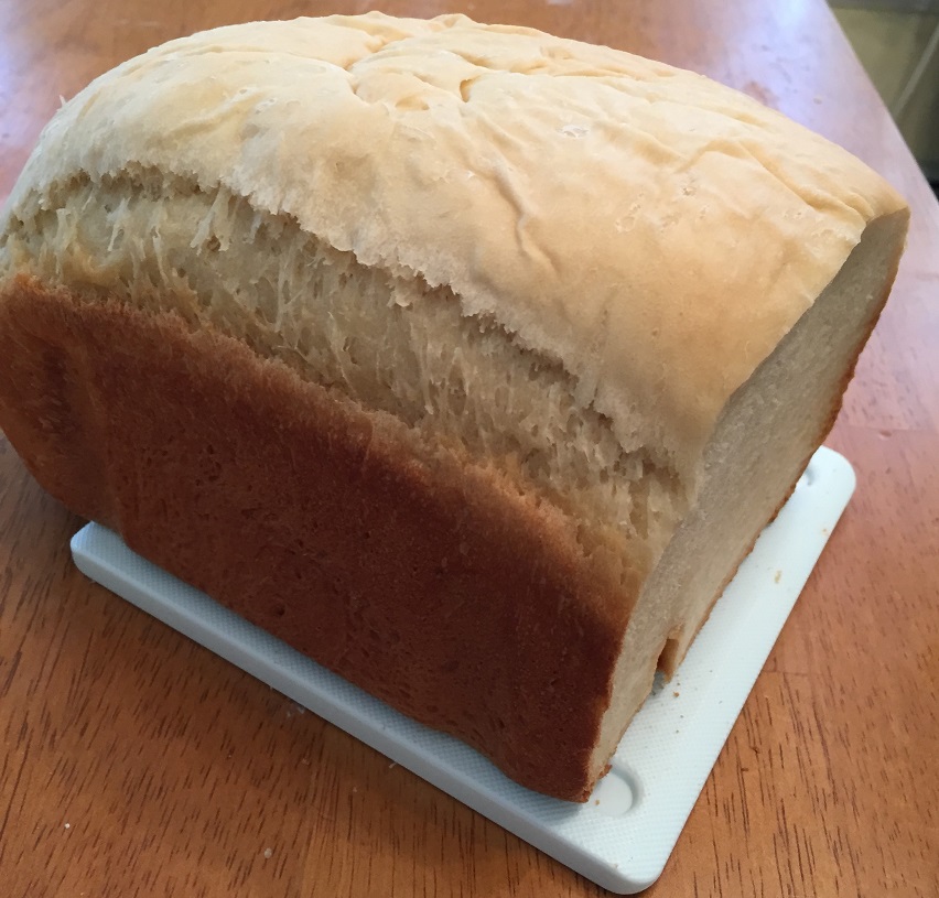 Now on to the basics of the machine itself. I really liked how simple it is to put everything together and the baking pan that is inside the machine has a nice nonstick coating on the inside to help you easily remove breads that you have baked or even doughs that have just been kneaded. The machine also comes with a 1 cup measure and a tablespoon/teaspoon for you to use for your measurements. The actual use of the machine could not be much easier than it is. I started off with the first recipe that I tried using the basic white bread recipe that comes in the manual. The basic white bread recipe is also posted right on the side of the machine so you do not always have to have access to the manual if you just wanted to make a simple sandwich bread. All you needed to do was put the ingredients right in, although they do need to be placed in a specific order in order to guarantee proper mixing and rising (water, flour, sugar, salt, dry milk, butter and then yeast in the center of the flour). I then plugged the machine in, and you get your choice of choosing not just what type of course you would like to make, whether it is a basic bread or a quick bread (you can use rapid rise yeast for the quick cycle) but you can also choose what type of crusty want for your bread, choosing light, medium or dark. Once you have selected that it is just a matter of pressing the start button and letting machine do its thing. The basic white bread recipe takes 3 hours and 45 minutes to do all the mixing, kneading, rising and baking. Once the bread is complete the machine beeps to let you know that it is finished. You can just pop open the lid and take the baking pan out, though you want to remember to use oven mitts while you are removing the baking pan as it will be quite hot. Because the baking pan is nonstick you do not have to struggle to try to get the loaf out of the pan. I also like the fact that the kneading paddles are small so it does not leave a giant hole in the bottom of your loaf of bread from where the dough was resting. The kneading paddles are also very sturdy and do a great job throughout the process. The final product was excellent and even though I am not a big fan of plain white bread, I have to admit that the bread came out quite nice and had a really good crunch to it. We have made several loaves of white bread since the Christmas holiday and Sean takes some for a sandwich for lunch just about every day to school. I would definitely recommend this particular breadmaker over the others that you find on the market today. Though the price can be a lot more, with this model costing nearly $250, it is certainly worth the investment and will pay for itself over the long-term if you use it regularly. Zojirushi also has a number of recipes posted right on their website that are not in the manual that you can try out. I have included a couple of pictures of the machine along with a picture of some of the white bread that we made recently. Tomorrow I will post the rye bread recipe that I used to make some tasty rye bread.