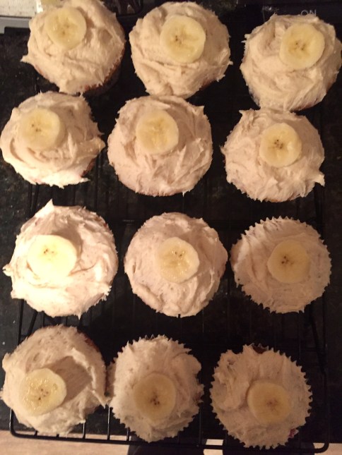 Published February 4, 2017 at 2448 × 3264 in Your Dessert for the Big Game – Banana Cupcakes with Bananas Foster Frosting