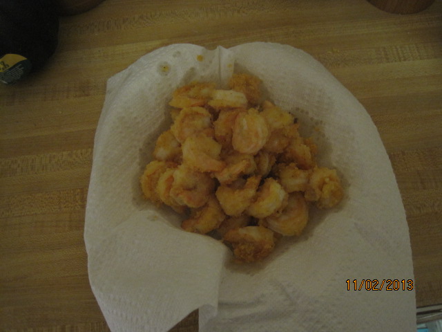 I love to make shrimp and now that Sean has a good appreciation for it as well since he has gotten older, we have it a little more frequently than we did in the past. Of course, Sean’s favorite way to have it is as fried shrimp. I don’t often make it this way because I try to stay away from doing too much frying these days, but every once in a while I do have to indulge him and make some nice, crispy fried shrimp. It is very easy to do only they only take a minute or two to make and will test better than any of the things you can buy in the grocer’s freezer that are already breaded and ready to be cooked. This recipe is sort of combination of recipes I got from Food Network and Williams-Sonoma, and you can certainly convert it into oven frying if you want to go that way instead. I also made an easy cocktail sauce to go along with it.