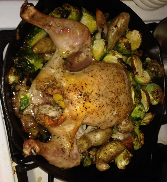 That’s all there is to this recipe. I find pricking the sausages works well so that they don’t burst in the casings and let some of the fat run out to flavor the vegetables a bit more. While turning them half way through cooking might seem unnecessary, I like to do it so the sausages get nicely browned all over. You can also mix up the vegetables a bit at the same time you turn the sausages so you can get more even browning on them as well. Roasting vegetables is my favorite way to prepare them since I think they get better flavor this way. You can vary the mix of vegetables if you like, but you may want to stick to items that are a little bit thicker if you are cooking everything together so that the vegetables do not overcook and burn before the meat is done. Carrots would work pretty well here, along with vegetables like cauliflower, squash, fennel or beets.I actually used a couple of carrots in my recipe.