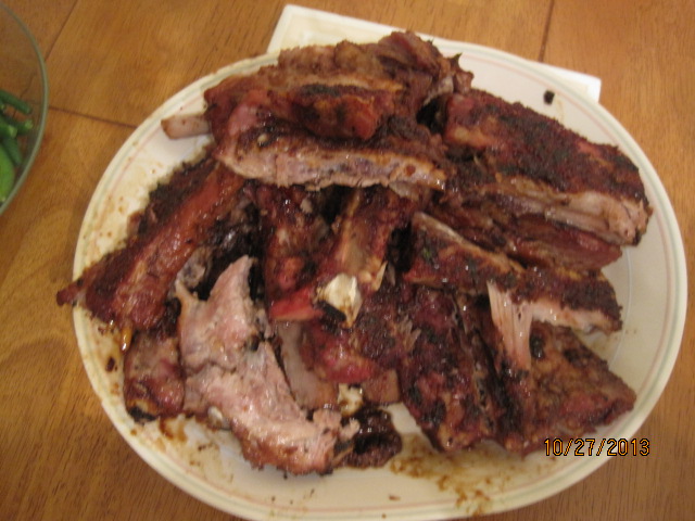 As I said, I use it for a lot of different things, like chicken, steak and shrimp and burgers, but you can use it for whatever you would like. I served the ribs with some of the leftover beans we had frozen from the pulled pork dinner, some corn on the cob, and some potato salad. It was a great Sunday meal.